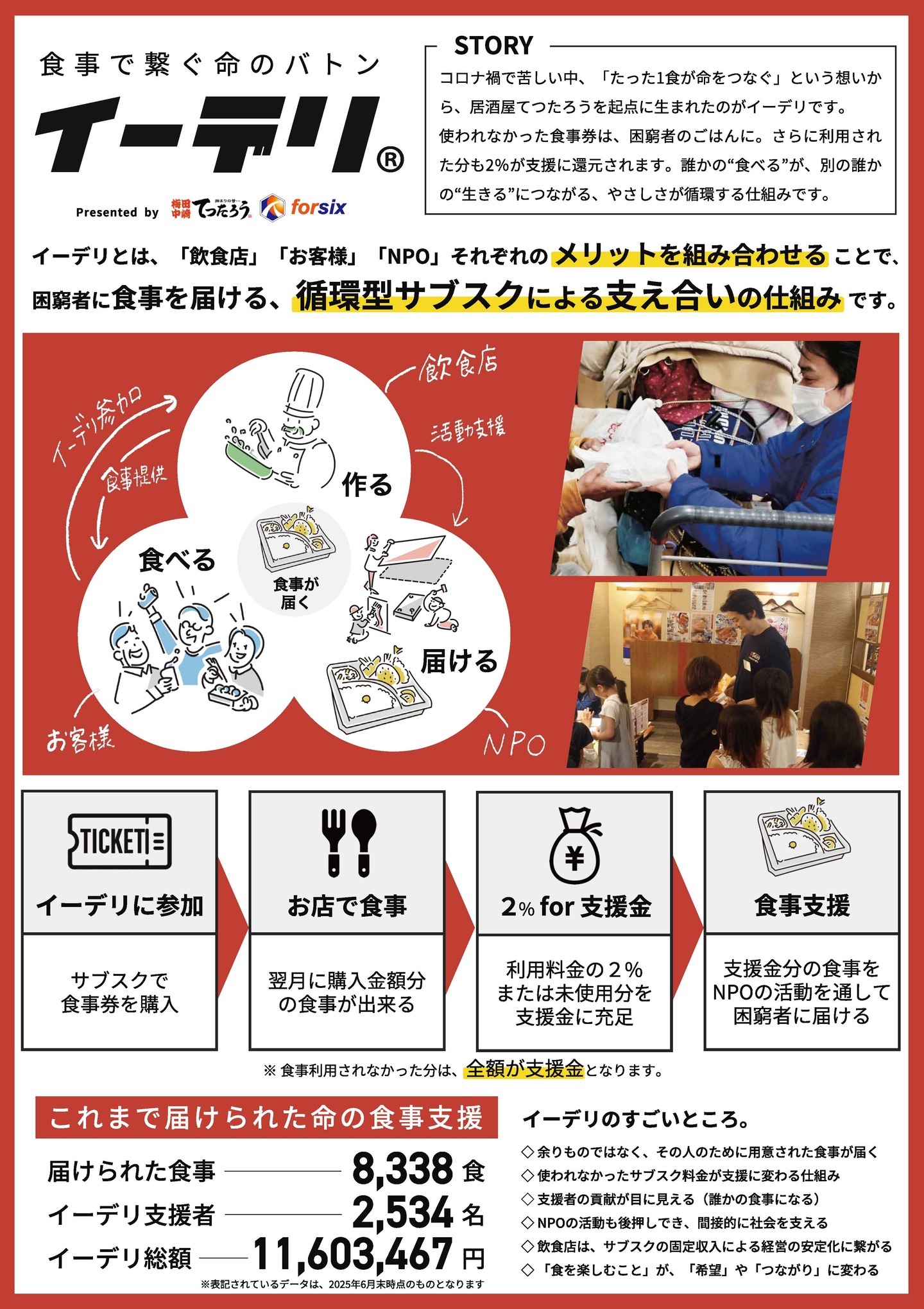 『イーデリ(EAT & DELIVER)』は、居酒屋てつたろうが立ち上げた、“命をつなぐ食の循環”を生み出す新しいサブスクリプションモデルです。